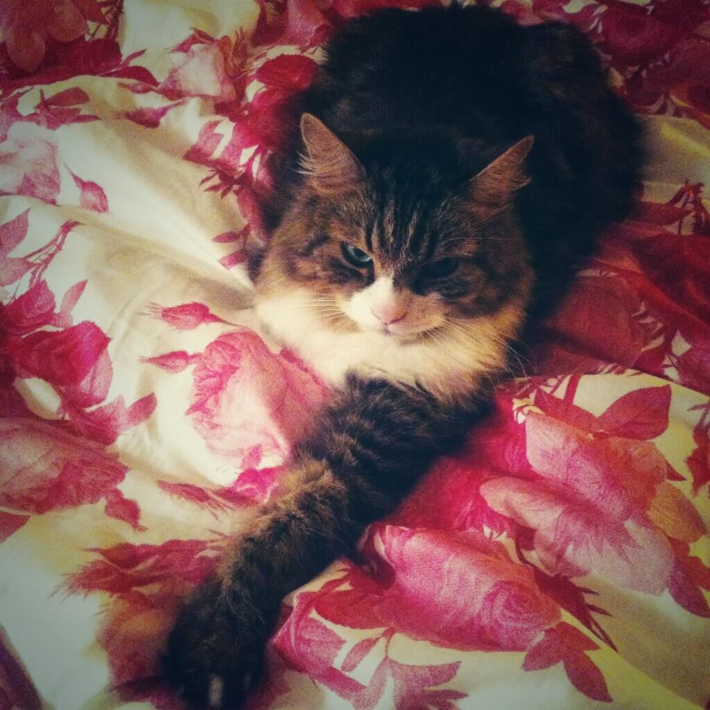 Jag har fått ta över min syrras dubbelsäng och slog i samma veva till på nya täcken och påslakan så nu är det fest varje kväll när vi ska sova! För Bamse är det dock party hela dygnet eftersom han fullkomligt älskar att ligga där. Mysigaste killen som finns! Älskar när han bor hos mig.